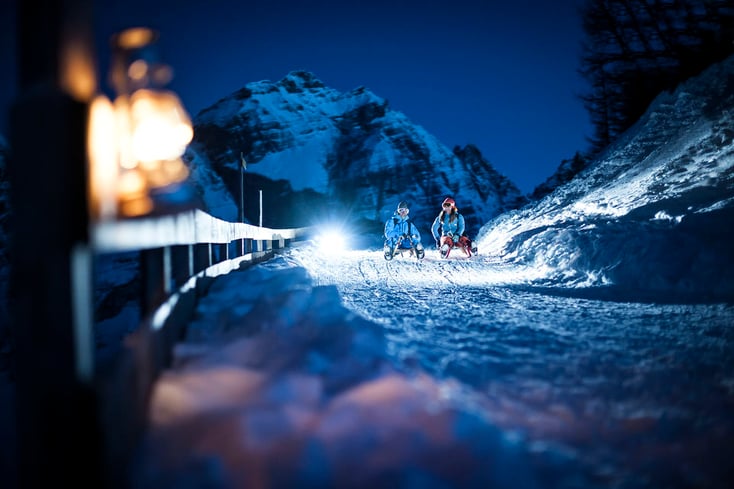 Heute gehört zu einem Winterurlaub im Stubaital eine flotte Rodelpartie unverzichtbar dazu! Rodeln ist nicht nur eine Aktivität, bei der jeder mitmachen kann, sondern es ist auch ein Wintersport, der besonders viel Spaß macht. Ist es die Faszination der Geschwindigkeit, die Freude an der Bewegung oder die Stimmung, die bei der geselligen Einkehr in eine Hütte aufkommt, die eine Rodelpartie so unvergleichbar macht? Probieren Sie den geselligen Sport selbst aus! Insgesamt 14 Verleihstellen sind im Stubai zu finden. Die Schlitten können entweder in Sportshops in Neustift, Fulpmes und Mieders, bei den drei Bergbahnen Schlick 2000, Elferlifte und Serlesbahnen oder direkt bei den meisten Hütten am Start von Rodelbahnen ausgeliehen werden. Ein besonders stimmungsvolles Erlebnis ist das Rodeln bei Nacht.