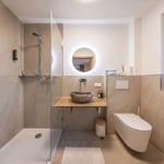 both bathrooms are equipped with shower, Wc, hair dryer and Luis-Trenker toiletries